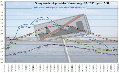 Starosta Piotr Wołowicz odwołał 31 styczni alarm przeciwpowodziowy i zamienił go na pogotowie również przeciwpowodziowe. Sytuacja jednak nie jest ciekawa, bo pod wodą Według szacunków w naszej gminie jest zalanych ok. 1100 ha, z czego 700 ha stanowią użytki rolne. Stan na dzisiaj wygląda z grubsza następująco.